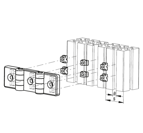 Этот тип петли рекомендуется использовать в случаях, когда, например, одна центральная рама соединяется с двумя боковыми дверями. Он может использоваться с алюминиевыми профилями от 30 до 60 мм, а также с комбинацией различных размеров.