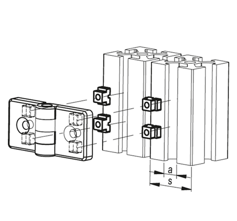 Этот тип петли может использоваться с алюминиевыми профилями от 30 до 60 мм, а также с комбинацией различных размеров.