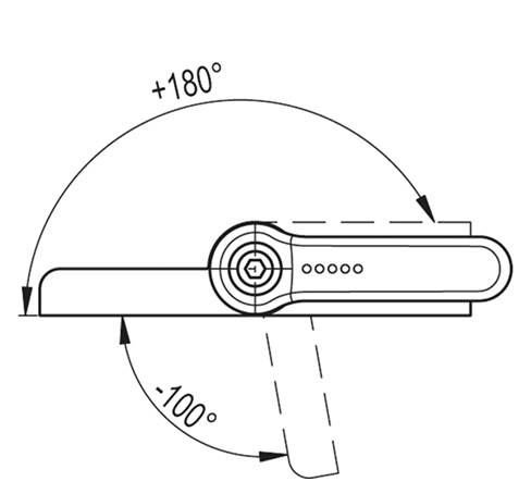 Петля CFG-ERS с фрикционным затвором позволяет запирать дверь в любом требуемом положении в поле вращения 280° с силой, пропорциональной крутящему моменту, прилагаемому к рычагу ERS.