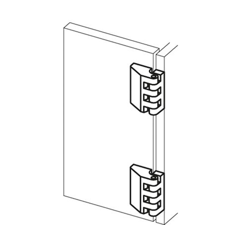 Петля состоит из двух корпусов различных размеров (узкий и более широкий) и может быть собрана, например, на конструкциях с тонкой коробкой или дверью.