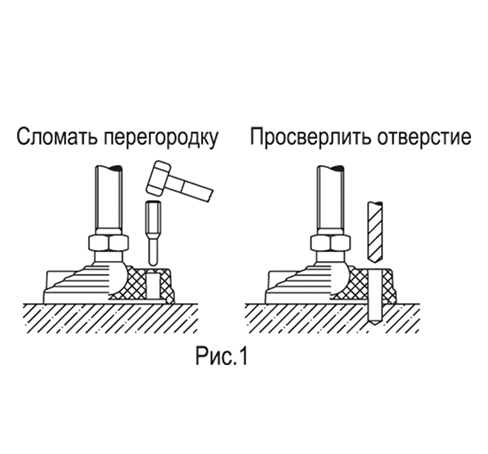 Осуществляется при помощи двух отверстий, расположенных друг напротив друга по разные стороны от винта и закрытых мембранами, которые легко удалить металлическим инструментом. Мембраны предотвращают проникновение сквозь отверстия пыли и грязи, когда необходимости в креплении опор к полу нет (см. рис. 1).