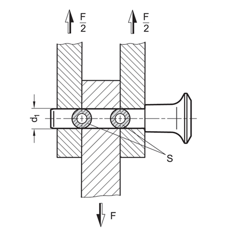 При этом поперечное сечение S болта, находящегося под угрозой, согласно ближайшей схеме учитывалось как две плоскости среза до разрыва.