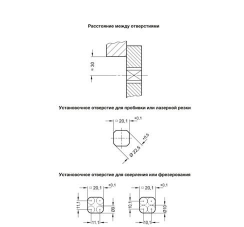 Установочное отверстие также может быть создано путем сверления или фрезерования, как показано на схематических чертежах.