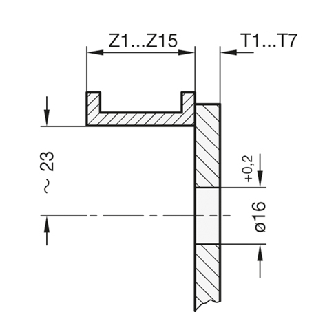 В двери должно быть отверстие Ø 16 мм на расстоянии 23 мм от дверной рамы до центра отверстия. Болт вставляется спереди. Распорная втулка, кулачковая защелка и тарельчатые пружины устанавливаются на валу с внутренней стороны в этой последовательности.